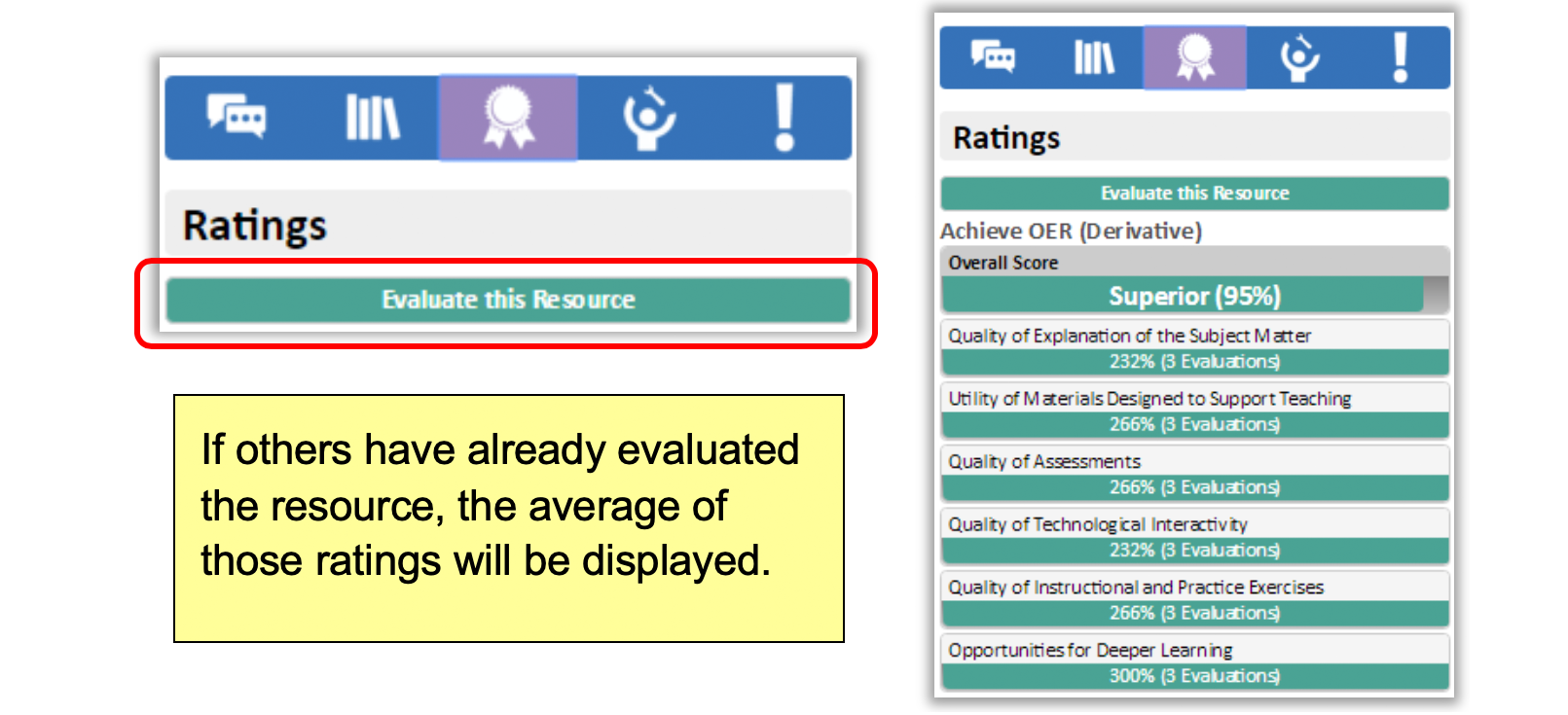 If others have already evaluated the resource, the average of those ratings will be displayed.