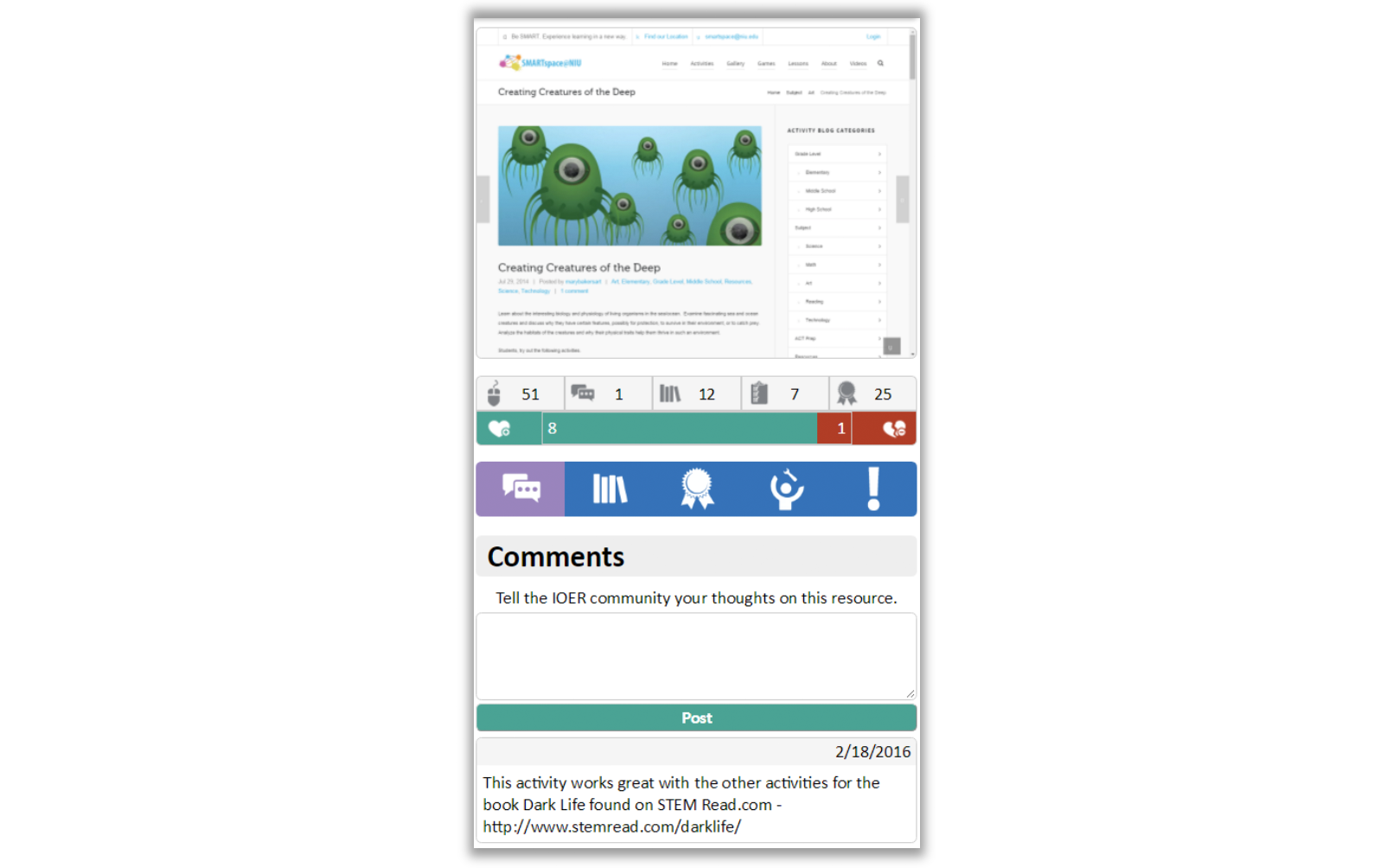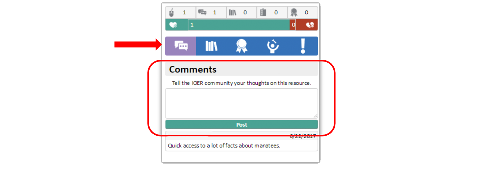 User feedback is located on the right side of any resource Detail Page. Registered users can leave comments, like or dislike a resource, evaluate the quality of a resource, and report an issue.